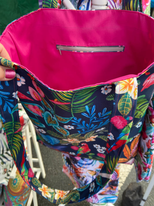 Tropical Island Tote Bag with zipped inside pocket
