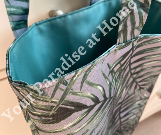 Turquoise Jungle Tote Bag with inside zipped pocket